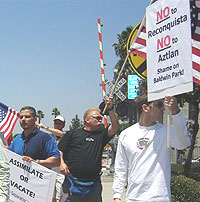 the injured woman and of Latinos screaming, 'This is our land!',