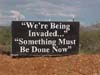 One sign cryptically proclaims, "It's An Invasion, Enforce Article IV-Section 4, It's the Law!" This message refers to the section of the U.S. Constitution that requires the federal government to protect the states from invasion. As one rancher succinctly put it, "Three million people a year is an invasion!"