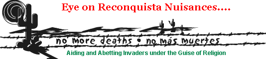 Arizonans -- May 30, 2004 of invasion helpers kicks off the festivities in front of at noon, but continues in Nogales, Mexico from about 1 pm on. Notorious reconquista assistants such as convicted invasion-aide John Fife, Mexican government agent and open-border zealot Isabel Garcia are scheduled to speak at various times during this dog-and-pony show, which is scheduled to run until 10 pm. |