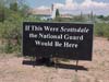 PHOTOSIn the , about four miles from the Port of Entry, another sign reads, "If This Were Scottsdale the National Guard Would Be Here." The implication being that if millions of illegal aliens were trampling through the neighborhoods of tony Scottsdale, that the authorities would take immediate and definite action to stop it. "If the elite were suffering from this (illegal immigration) problem we would definitely see some action," said Bob Park, a Prescott resident who painted the signs and then brought them to Cochise County in his pickup truck. Park, a former Border Patrol officer, recently formed a group called "The Border Defense Coalition" an Article 4 Section 4 organization that is a project of U.S. Inc. out of Petoskey, Michigan.