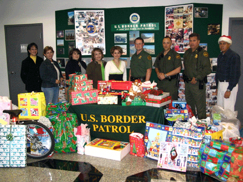 Juanuary 4, 2005U.S. Border Patrol Donates Gifts to Local Children Tucson, AZ -- The agents of the eight Border Patrol Stations that comprise the Tucson Sector gave many gifts and donations to less fortunate families within their local communities this holiday season.