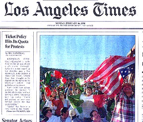 FRONT PAGE OF LOS ANGELES TIMES -- MONDAY, FEBRUARY 16, 1998