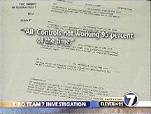 HALSNE: A one-hundred page report file deep inside INS headquarters in Washington, D.C., says it will take millions more to fix the equipment. KIRO Team 7 investigators were denied the report under homeland security measures. They said that it would cause the Government harm and that camera failure rates were sensitive but unclassified papers. |